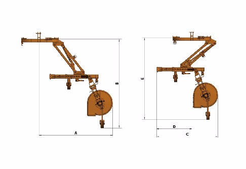 型號 | 圓盤(pán)直徑(mm) | 馬達輸出(mL/r) | 懸掛方式 | 馬力(hp) | A | B | C | D | E | 重量 |